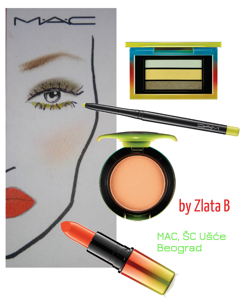 Nova MAC Wash&Dry letnja kolekcija donosi tri nove VELUXE PEARLFUSION SHADOW TRIO palete senki za oči dizajnirane u tri varijante: GREEN CLEAN (pale white green, lime, deep khaki with gold pear), WARM WASH (white with orange gold pearl, peachy orange, copper gold bronze) i PERMANENT PRESS (white beige, calm brown bronze, black with gold pearl). Cena: 3.850 din.